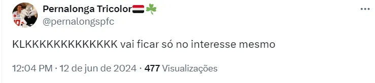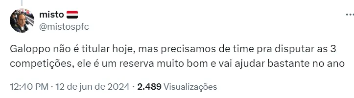 “Galoppo não é titular hoje, mas precisamos de time para disputar as três competições (Libertadores, Brasileirão e Copa do Brasil), ele é um reserva muito bom e vai ajudar bastante no ano”, disse um torcedor.