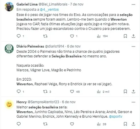 Durante a discussão, ambos concordaram com um ponto em particular: a preferência por Weverton, o goleiro do Palmeiras que, apesar de ter sido parte da Copa do Mundo de 2022, atualmente encontra-se fora da lista de Fernando Diniz.