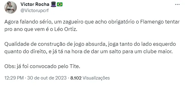 Não é novidade que Ortiz é um dos alvos do Flamengo para 2024. O clube carioca pode perder nomes como os de Rodrigo Caio, Pablo, Léo Pereira e até mesmo David Luiz para o setor.