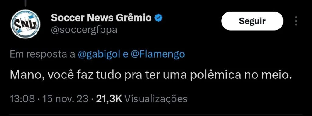 Postagem polêmica de Gabigol em sua conta no Twitter.