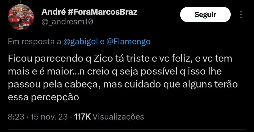 Na imagem, aparecem o atacante, com duas Libertadores em seu colo, e o ex jogador Zico, maior ídolo da história do clube, com apenas uma. Alguns entenderam a postagem como uma provocação, e acabaram criticando bastante a sua atitude.