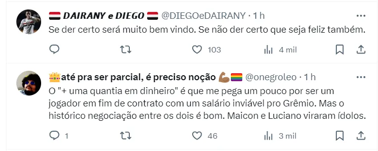 No mercado, o São Paulo tem concorrência pelo atacante, uma vez que há fortes olhares do futebol do México. O Grêmio, em caso de venda, deseja fazer montante com o jogador.