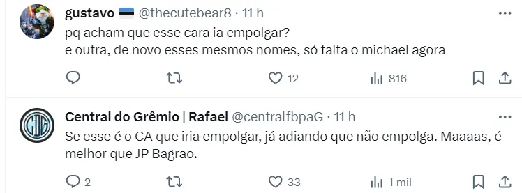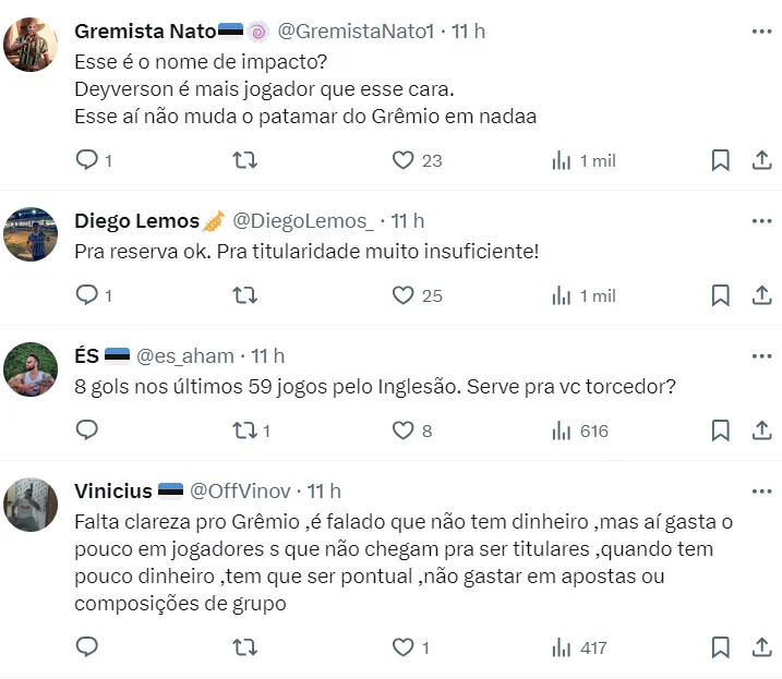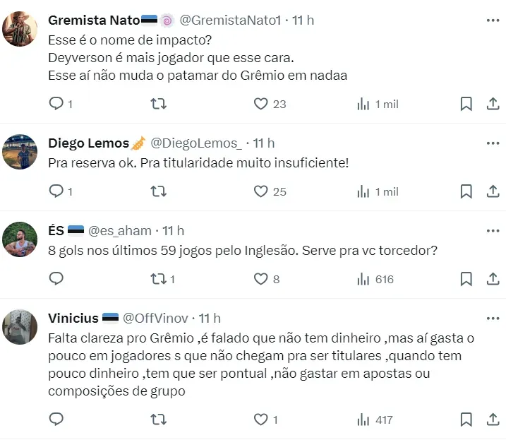 Na web, parte da torcida do clube não é a favor da contratação do jogador. Para ser reserva, ok, mas para ser titular, os torcedores entendem que é preciso de mais.