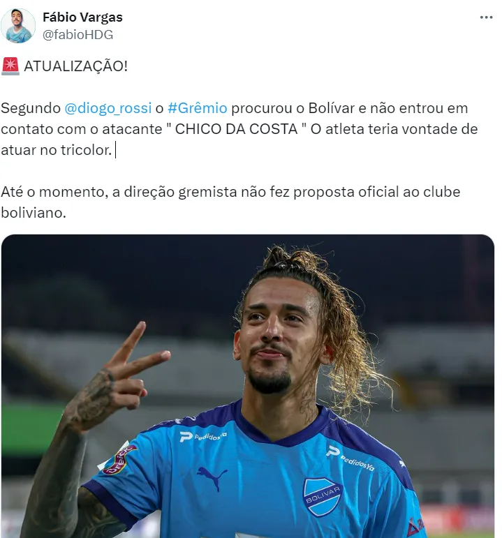 Ele vive grande fase na temporada e, por isso, chamou atenção do Grêmio. Com a camisa do Bolívar, são 51 gols marcados em 81 jogos disputados, além de 20 assistências. O Tricolor precisa chegar no acordo com o time da Bolívia.