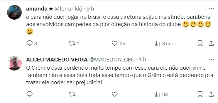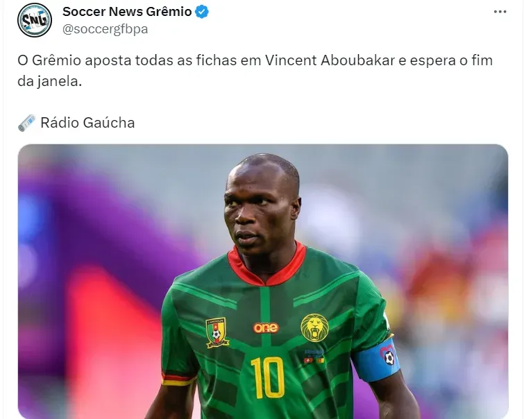 O Grêmio olha para o futebol de Aboubakar desde mesmo o ano de 2023, quando ficou claro que Suárez deixaria o clube. Com tentativas sendo feitas, o clube espera o fim da janela para tentar avançar pela última vez.