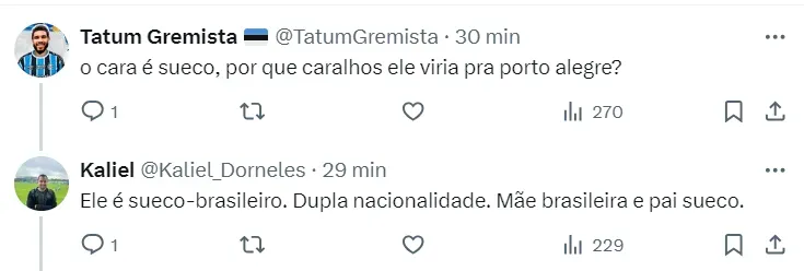 O Tricolor também estava disposto a arcar com os vencimentos do jogador sueco para tê-lo no elenco como reforço, mas as tentativas com o AEK não avançaram e um negócio está descartado no momento.
