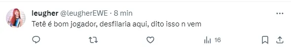 No entanto, não será nada simples tirar Tetê da Turquia. Há alguns dias, Jorge Nicola revelou que o avançado tem um grande contrato e recebe cerca de R$ 2,6 milhões por mês.