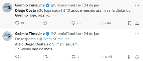 Isso porque, segundo o portal “sougremio.com.br”, Diego Costa, que está livre no mercado da bola, foi oferecido ao Grêmio nos últimos dias. Entretanto, o Tricolor não se animou.