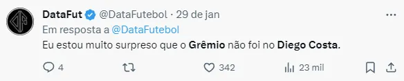 Grêmio: Diego Costa é oferecido
