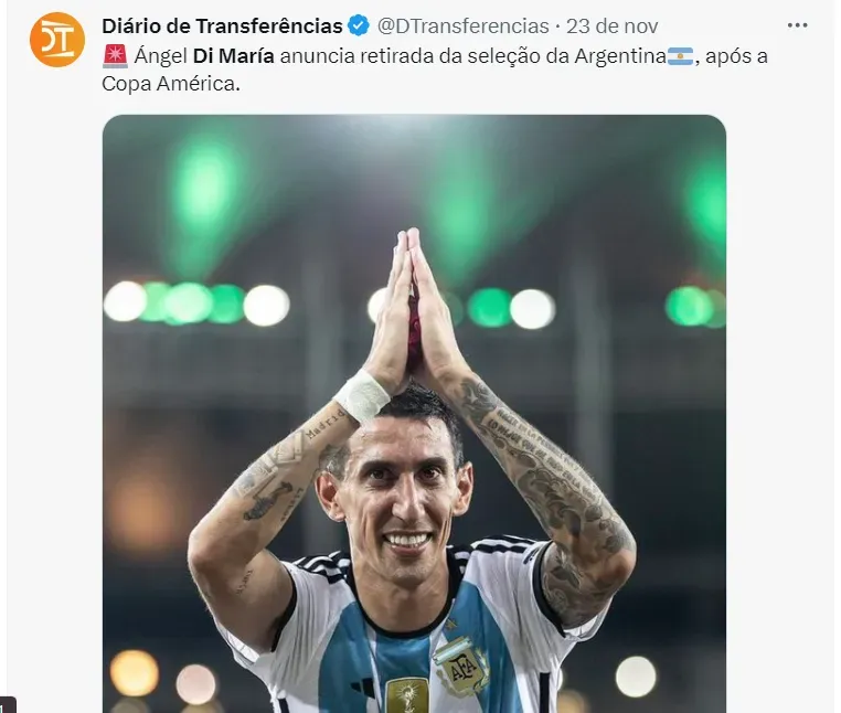 E um dos jogadores que o site ‘Notícias Bahia’ revelou é Angel Di Maria, de 35 anos de idade, craque do Benfica, de Portugal. Com pouco mais de seis meses de contrato com os português, Di Maria poderia ser um reforço de peso do Bahia em 2024. Mas é claro, tudo não passam de rumores neste momento. Sequer há conversas.