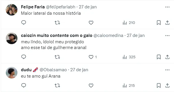 Agora, em 2024, Arana já participou dos dois jogos do Galo, mostrando estar totalmente recuperado e jogando no mesmo nível de sempre. Porém, com isso, é comum que outros clubes abram os olhos para seu futebol.
