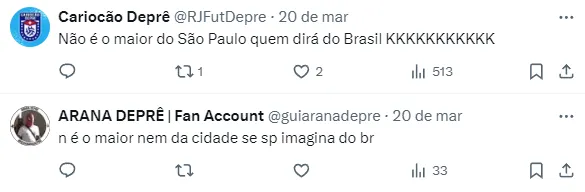 É claro que Palermo também atuou contra diversos clubes do Brasil. Até por isso, o argentino demonstrou propriedade para apontar os cinco maiores clubes do futebol brasileiro.
