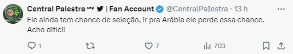 Mas, enquanto isso, o meia segue focado no Palmeiras. Nesta semana, o Verdão conseguiu uma grande virada na Libertadores ao bater o Independiente del Valle por 3 a 2.