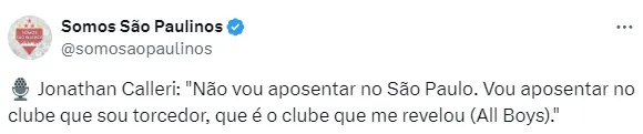 Porém, engana-se quem pensa que Calleri encerrará sua carreira no São Paulo. Em uma live, o atacante foi sincero e revelou que pretende se aposentar no All Boys, da Argentina.