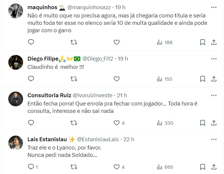 A informação é do portal Identidade Corinthiana. De acordo com a fonte, Fabinho Soldado pediu a lista de jogadores que o Timão vem negociando no mercado. A ideia do novo cartola é tentar fechar com algum atleta que está presente na lista, que é caso de Igor.