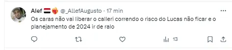 O jogador é um dos mais ‘afetados’ pelos atrasos do São Paulo, de acordo com o portal. O clube voltou a dever direitos de imagens e também bonificações previstas em contrato pela conquista da Copa do Brasil, além de outras metas. No caso de Calleri, há também luvas atrasadas de anos anteriores.
