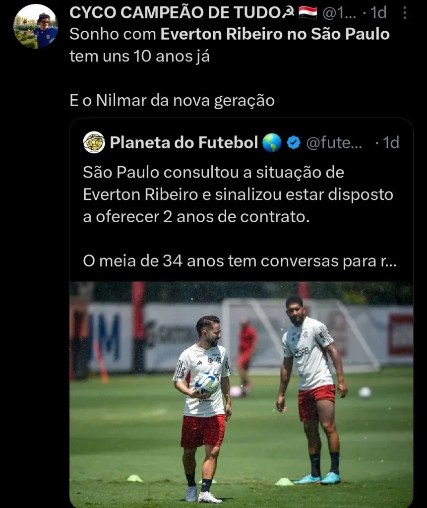 A fonte afirma que o nome do atleta agrada tanto Renato Gaúcho, quanto Dorival Júnior, que trabalham com o meia no próprio Flamengo e desejam tê-lo em seus respectivos elencos.