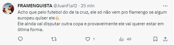Segundo o jornalista do canal Resenha Rubro-Negra, pessoas ligadas a Marcelo Gallardo já abriram conversas com o estafe de De La Cruz para falar sobre a transferência.