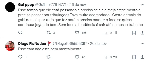 É bem verdade que Gabi está negociando uma renovação com o Flamengo. Entretanto, as conversas paralisaram muito por conta do momento do atacante, que não é nada bom.
