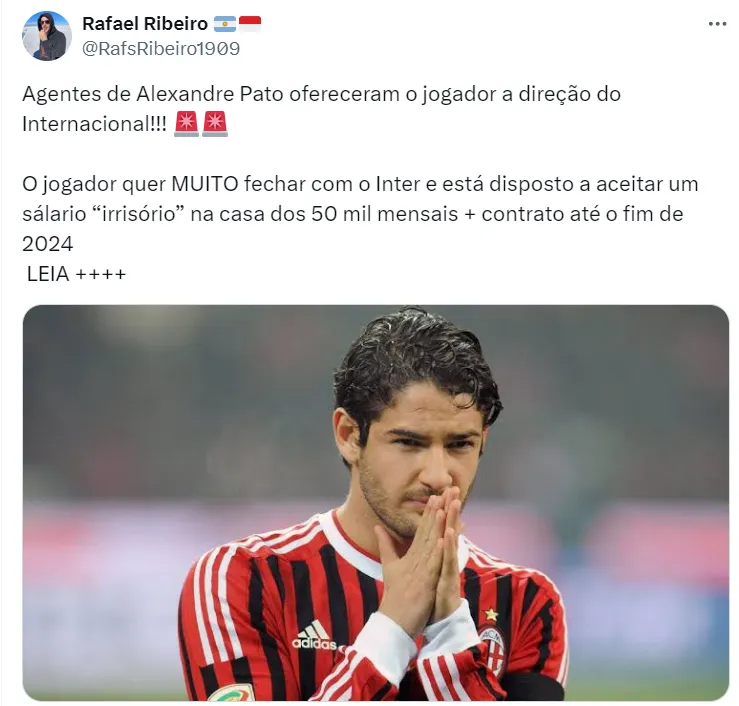 O atacante Alexandre Pato faz de tudo para voltar ao Internacional e, para isso acontecer, está disposto a ganhar um salário “irrisório” para vestir as cores vermelhas.