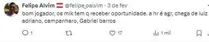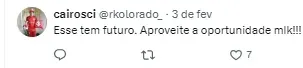 “Ele tem sondagens de fora, sim. Desde a base procuram saber dele”, comentou o estafe do jogador em entrevista ao portal “Revista Colorada” nesta quarta-feira (27).