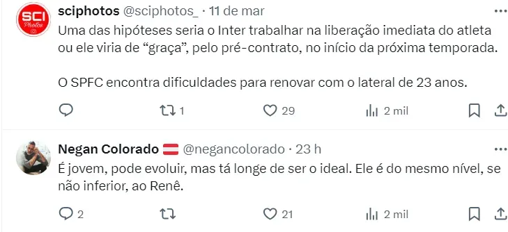 Por parte do São Paulo, o clube ainda tenta renovar o contrato do ainda jovem defensor, mas sabe que as chances do lateral deixar o futebol paulista para jogar em Porto Alegre são grandes.