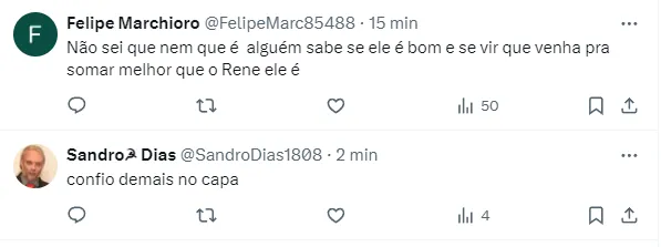 Bernabei está com 23 anos de idade e chega para pela vaga do experiente Renê, que vem sendo bastante contestado por parte da torcida neste início de temporada.
