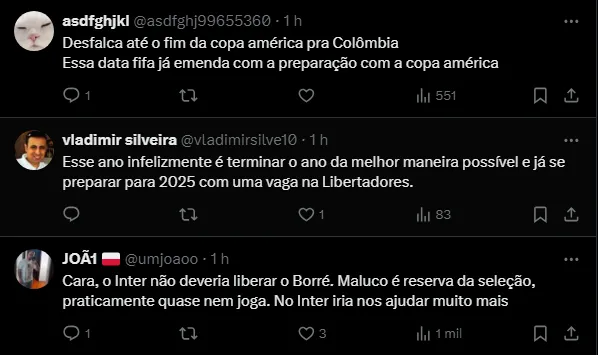 Reação dos colorados com a ausência de Borré