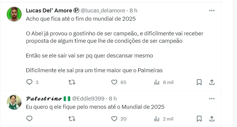 Após o jogo, Abel Ferreira concedeu entrevista coletiva, e deixou parte da torcida do Verdão bastante com medo nas redes sociais. De acordo com alguns palmeirenses, Abel deu sinais de que a história está terminando.