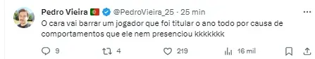 Um dos motivos, ainda segundo o portal, é que o novo técnico sinalizou problemas recentes de comportamento do goleiro durante as atividades no CT Lonier. Além disso, as últimas atuações do goleiro pesaram.