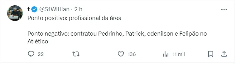 Essa não é a primeira vez que o nome de Caetano ganha força no Corinthians ou em outro clube do futebol brasileiro. Com o Galo, ele tem contrato em vigor até o ano de 2026.