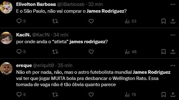 Mesmo com contrato válido até junho de 2025, o canhoto James Rodríguez não tem a saída descartada do São Paulo ao longo da temporada. O presidente Julio Casares falou sobre o assunto antes do Majestoso desta terça-feira (30).