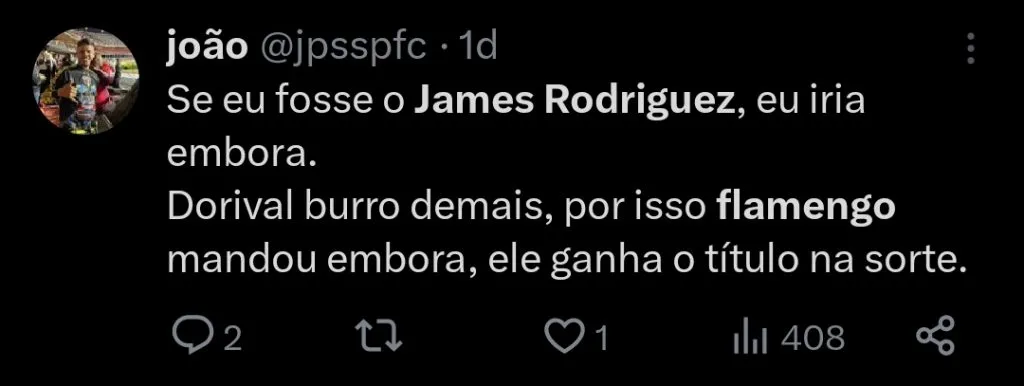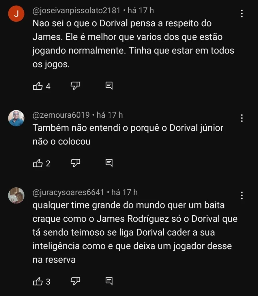 Neste cenário, Alemão salienta que a chance de James deixar o São Paulo rumo ao Flamengo em 2024 é quase nula, com o atleta tendo desejo de permanecer no time para o próximo ano.
