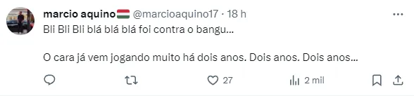 No jogo diante do Bangu, Arias foi determinante para a virada do campeão da Libertadores na segunda etapa. O colombiano contribuiu com dois belos gols marcados, além de uma assistência.