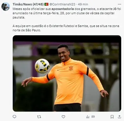O experiente atacante Jô, aposentado do futebol profissional desde o início do ano, surpreendeu os fãs ao anunciar seu retorno aos campos, mas, desta vez, para atuar na várzea.