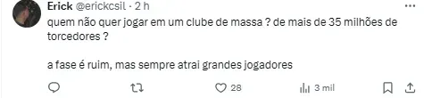 “Se eu tenho sonho de jogar no Corinthians? Sim. Quando? Por mim, amanhã eu estaria no clube. Espero não demorar, porque eu quero o quanto antes sentir a energia da torcida que é incrível”, disse Gabriel.