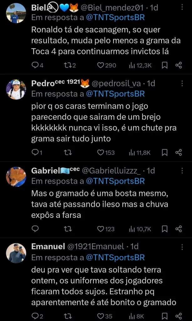O lateral-esquerdo Marlon não ficou em silêncio quando questionado em relação a qualidade da Arena. Na visão do jogador, o lugar peca no gramado, que é classificado como “muito ruim” pelo atleta do Cabuloso.