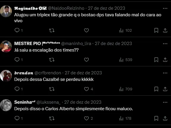 “O Carlinhos fez a carreira dele ficar um pouco obscura devido ao extracampo dele. Com alto rendimento na melhor forma física, ele foi muito melhor que o Arrascaeta”, disse.