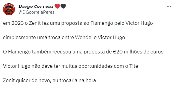 Isso porque, segundo o portal Fla Web, o Lyon voltou com tudo para fechar com o meia Victor Hugo, considerado uma das maiores joias do Flamengo na atualidade.