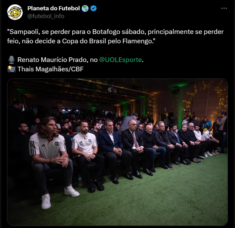“Sampaoli, se perder para o Botafogo sábado, principalmente se perder feio, não decide a Copa do Brasil pelo Flamengo.” – confirmou.