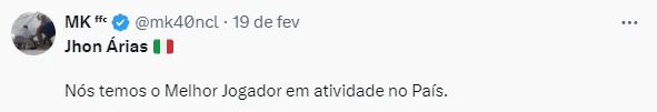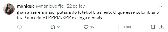 Trata-se do colombiano Jhon Arias, que soma dois gols e uma assistências nos cinco jogos em que disputou neste início de 2024. O jogador tem 26 anos de idade.