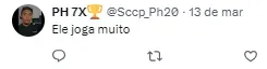 Torcida do Corinthians elogia o jogador