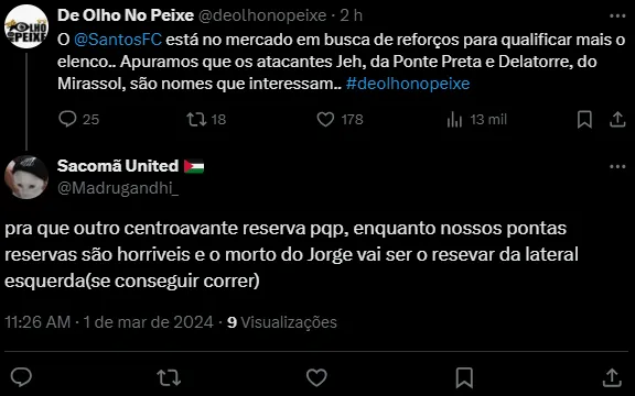 Agora em 2024, o Santos aceitou tentar recuperar o jogador e o contratou por novo empréstimo sedido pelo Alviverde. No entanto, o Alvinegro Praiano não confia 100% no canhoto neste momento.