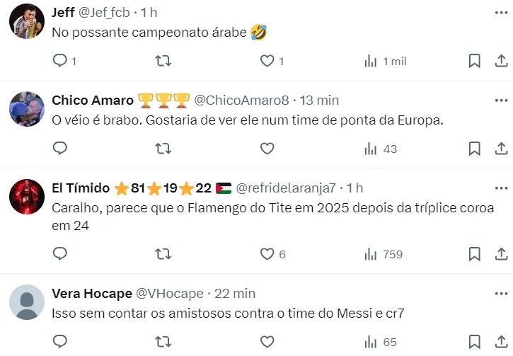 Jorge Jesus, que é considerado o maior treinador da história do Flamengo, chegou ao futebol saudita nesta temporada e está em fim de contrato com os Sauditas. A tendência é de renovação de contrato.