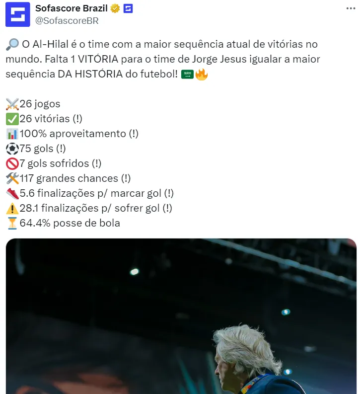 O grande jogo que poderá coroar o Al-Hilal como o time que mais venceu jogos seguidos na história do futebol mundial será justamente com o Al-Ittihad, de Marcelo Gallardo. Eles se enfrentam pela Champions League local no dia 12.
