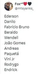 “A Inglaterra tem grandes jogadores, nomes importantes, mas o Brasil tem também. Não tenho nada a dizer além disso. Com todo respeito à Inglaterra, amanhã será um grande jogo, com certeza”, complementou.