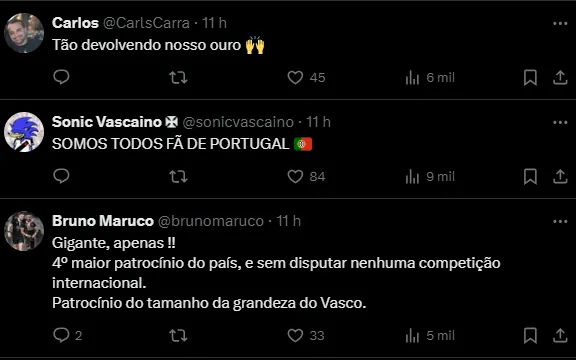 “Vasco encaminha patrocínio máster de R$ 75 milhões por ano. O acordo seria com uma empresa portuguesa recém-criada do ramo de apostas esportivas. O contrato seria válido por 2 anos e renderia R$ 150 milhões”, destaca a ESPN.