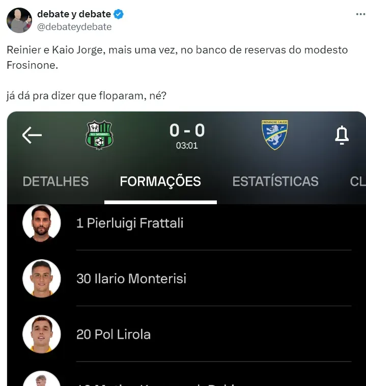 Grande revelação do Santos e, atualmente, defendendo as cores do modesto Frosinone, da Itália, junto à Juventus, Kaio Jorge ainda não conseguiu mostrar seu grande potêncial no futebol europeu.