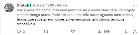 nesta reta final já pensando em 2024. Foram sondagens para a Série B”, explicou.