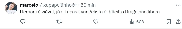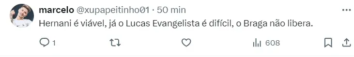 “O Corinthians é louco para contratar ele (Lucas Evangelista) e o Hernani também. Isso foi o que eu fiquei sabendo. Se é verdade ou não, o clube que fale que não”, revelou Craque Neto.